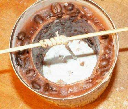 Через некоторое время, когда воск застынет на 5-7 мм от края, не застывшую массу выливаем обратно в емкость, где воск растапливался. Теперь добавляем красители и ароматизаторы, нагреваем, и заливаем снова в форму. Не забываем про фитиль.