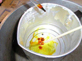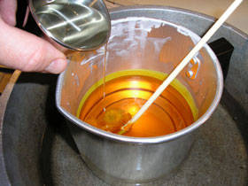 После того, как воск расплавится, в него добавляется несколько капель красителя …