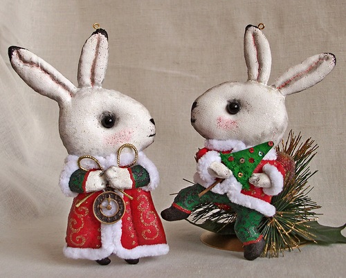 Еще одним достойным украшение на Новый год могут стать мягкие игрушки. При этом незатейливые выкройки игрушек состоящих из двух половинок можно довести до такого совершенства, что уже совсем и не будешь обращать внимание на то, что игрушки "плоские".