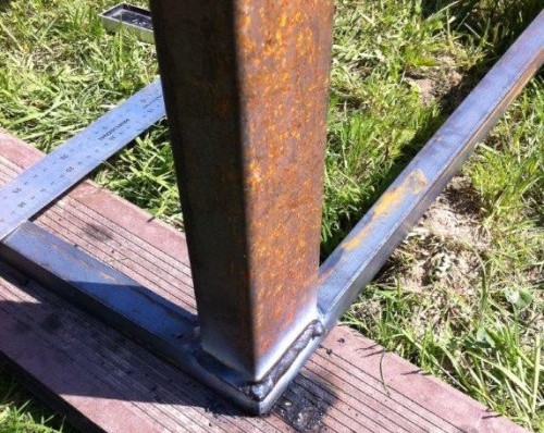 Место сварки почти не видно. Проходим по кругу конструкции, зачищаем. Ставим ножку.