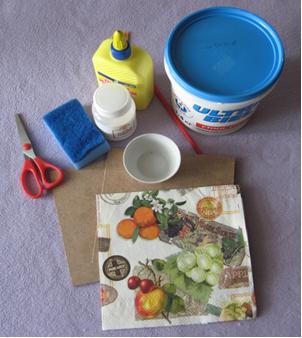 Первый вариант изготовления подставки под кружку мы вам предложим в технике декупаж. Техника эта довольно популярна, так как доступна каждому, способна преобразить любой предмет и потребует минимум материалов, при чем еще и не дорогих. Итак, начнем с нее. Прежде нам необходимо запастись материалами. Как мы и говорили они доступные.