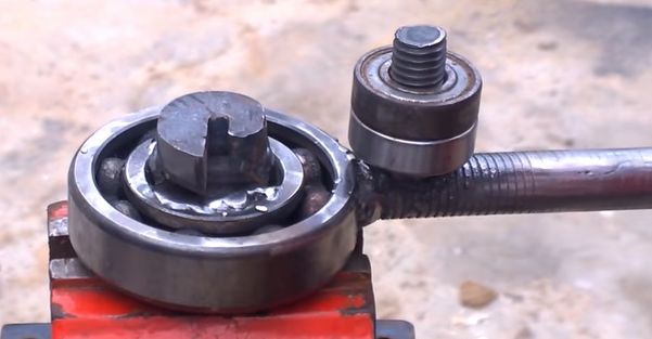 А потом приварить еще и ручку. Типа вот такой. При этом заметьте, от ручки идет стержень, на который будет посажен еще один подшипник. А вот зачем, это чуть далее.