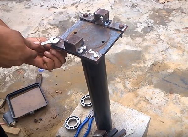А внутрь подшипника ввариваем две детали, к которым закрепим ручки.