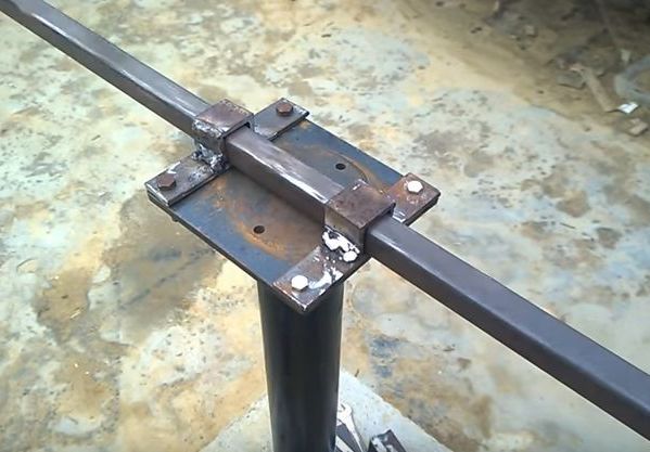 Давайте теперь о приспособлении, с помощью которого как раз и можно будет сделать такие витые прутки. Необходимо будет сделать основание, при этом из уголка надо будет сделать направляющие для трубу 20*20 или 25*25. В общем смотрим как должно выглядеть.