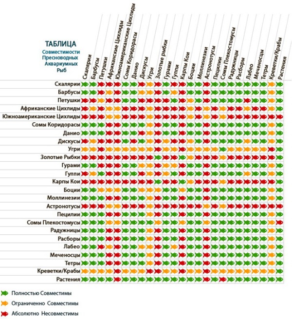 Совестимость аквариумных рыбок между собой и другими обитателями