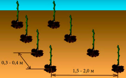 При этом надо рассчитывать на то, что расстояние между кустами должно быть 0,3-0,4 метра. Это правило действительно для любого посадочного материала.