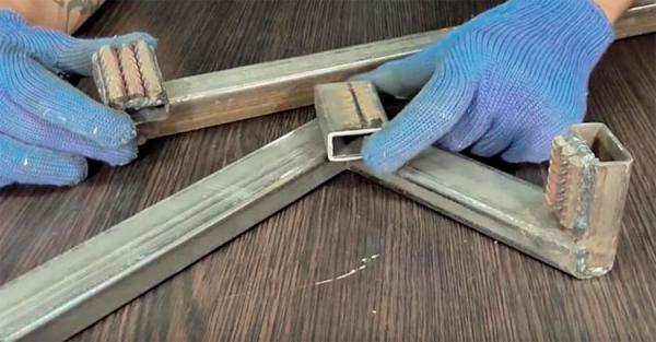 Потом берем вторую прямую трубу 40*20 и на ней тоже устанавливаем поворотную площадку с подобной поверхностью для захвата.
