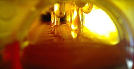 Под каждой из рамок установлена трубка – коллектор, сообщающаяся с сотами на рамке. Доступ в эту трубку закрыт до тех пор, пока ее не выдвинешь наружу. Как только трубку выдвигают из-под рамки, то открывается система каналов, по которой и стекает мед.