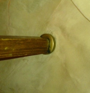 В нашем случае это отверстие на верхней, то есть на ворсистой части. Помечаем место ручкой или маркером, чтобы не потерять местоположение отверстия. Зачищаем ворс с помощью мелкой шкурки. Особо не усердствуем. Не протираем дыру большего размера. Слегка зачищаем.