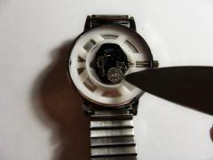 Если его нет, то пробуйте пинцетом или пассатижами с длинными губками. Сразу заметим, что в этом случае вероятность поцарапать крышку часов увеличивается многократно.