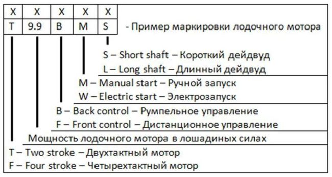 Производители водной техники сделали условный типоряд, обозначив ноги мотора под длине определенными буквами: