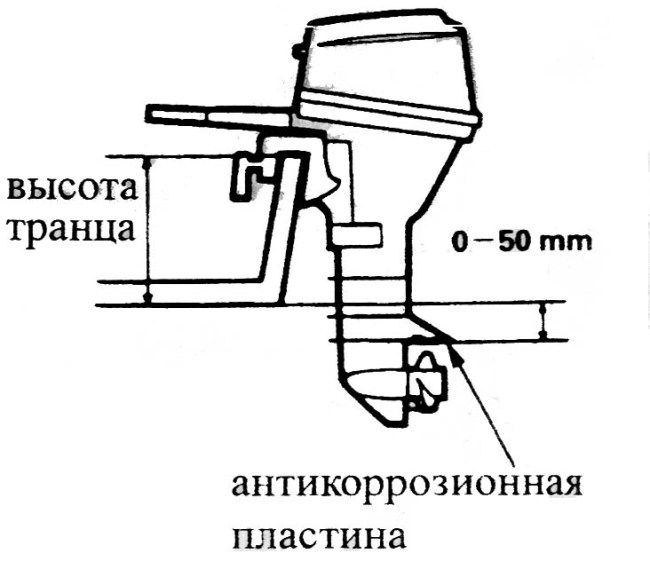 По сути нога это то, что идет от колпака мотора, где стоит сам двигатель и вниз до редуктора. Нога мотора это не просто удлинитель, но еще и вал, которые в нем установлен. Так вот, в зависимости от лодки, от высоты ее борта, а вернее от высоты транца, надо будет выбрать ногу мотора по размеру. В идеальном случае длина выступания ноги с редуктором ниже дна лодки, а еще точнее расстояние от между гидрокрылом (плитой) и дном лодки выставляется не более 50 мм, а еще лучше 20-30 мм. Вот несколько картинок из инструкций.