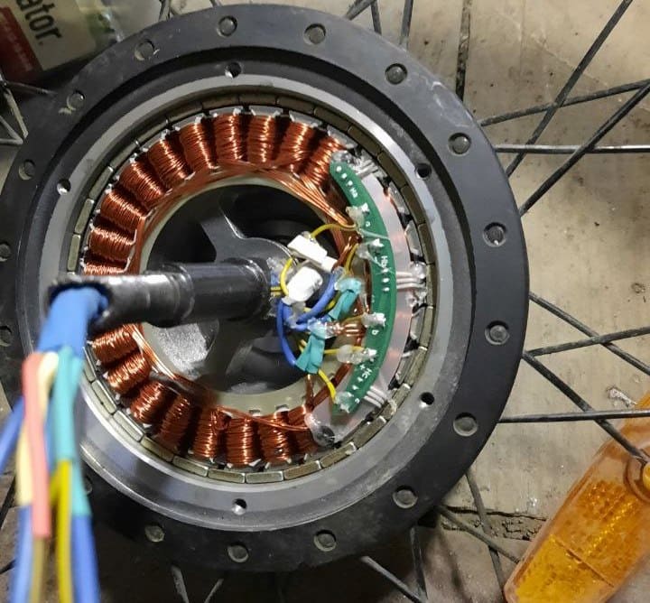 И чтобы сохранить эту информация для истории, и для того "дабы понадобиться", создал эту вот заметку. На фото видно, что провода перебиты, что и стало причиной вскрытия колеса и необходимости припаять провода внутрь. Их длины не хватало для подключения. Сам электромотор вскрывается следующим образом. Первым делом снимаем колесо, потом уже откручиваем шестигранником болты по периметру, видны на светлом металле отверстия. И выстукиваем наружную крышку с втулки, вместе со набором звездочек для переключения передач.