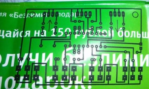 Если у вас двухсторонняя плата, то здесь необходимо синхронно проводить такую же процедуру и для второй стороны. Также важно совместить два рисунка, чтобы после сверления отверстий, дорожки соединялись между собой. Если у вас в отверстии не предусмотрена установка радиодетали, то установите в нее перемычку, соединяющую одну и вторую сторону платы. Собственно говоря это логично.