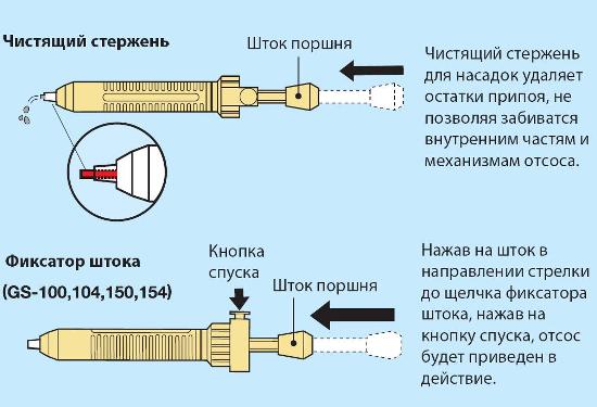 В этом случае к разогретому припою приставляется конструкция, которая похожа на шприц. После нажатия на кнопку, она резко поднимает поршень, происходит разряжение и лишний припой попадает в емкость отсоса. Вот и все секреты того, как можно выпаять деталь с платы.