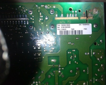 Теперь один из примеров ремонта блока управления стиральной машинкой ARISTON ARSL100. В этом случае прогорели дорожки, которые удалось восстановить. Это сам "пациент".