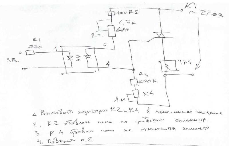 Помогите пожалуйста собрать симисторный ключ для споттера (будет включать три трансформатора по 800ватт.)есть симисторы тс132-50-6-5 и оптотиристоры TOSHIBA TLP3052. Что ещё мне нужно и какая схема.помогите пож.оч.надо