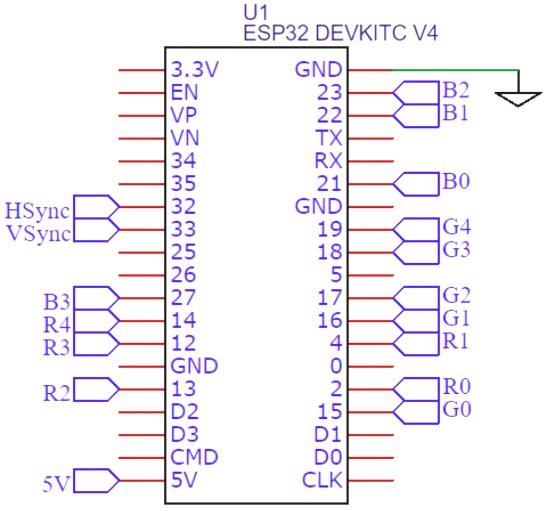 Земля: Подключите GND ESP32 к пинам GND VGA.