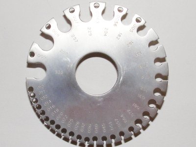 Берем провод, вставляем его отверстие в калибре и пытаемся вывести наружу. Если он прошел, то пробуем его на числе выше по показанию. Последнее число на калибре, в которое прошел провод и будет искомым нами числом, то есть числом по стандарту AWG (American wire guide).