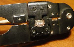 Обжать голыми руками кабель не удасться, так как надо будет придавить контакты к проводникам в кабеле. Сделать это можно с помощью обжимного инструмент, например RJ-45/RJ12. Есть и другие варианты инструментов, но суть у них одна. Инструмент будет зажимать пластины в коннекторе, разрезать изоляцию на проводах и, тем самым обеспечивать контакт, между проводом и коннектором.