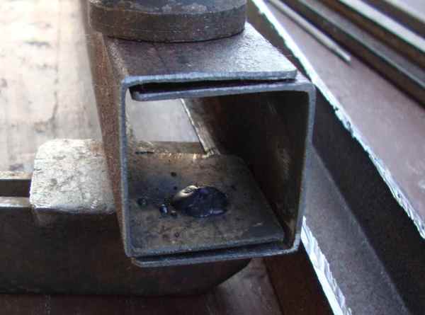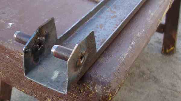 Теперь начинаем собирать поворотные крепления, то есть соединять стационарную и поворотную планку. С одной стороны она будет закреплена на стержне, то есть на подобие обычных петель, а с другой будет вварен шарик, такой своеобразный фиксатор. Что же смотрим.