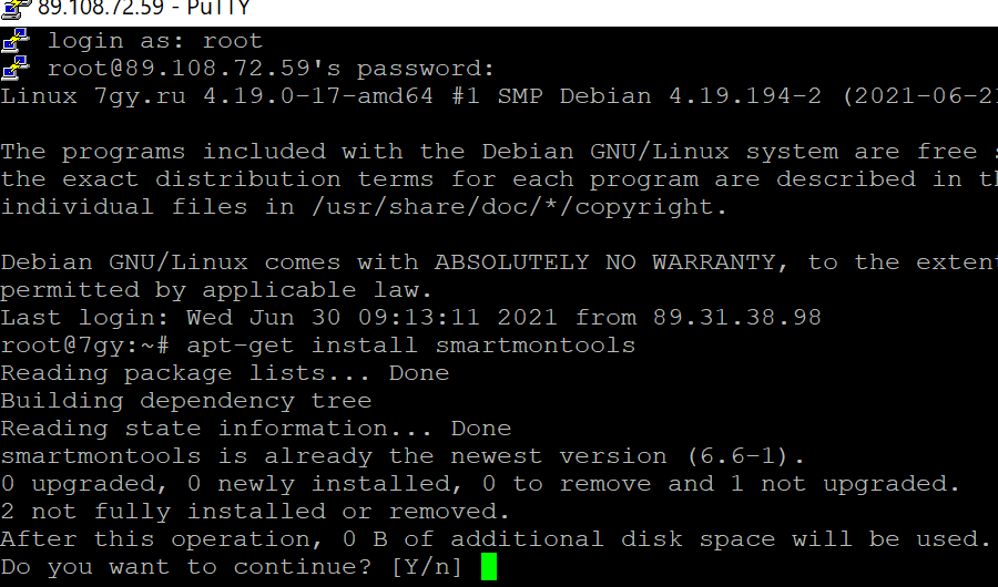 Ставим утилиту для просмотра SMART следующей командой, через скажем программу PuTTy под логином суперадминистратора командой: apt-get install smartmontools