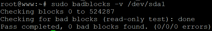 Так вот, этот способ мониторинга касался smart функции. Есть возможность проверить битые ячейки с помощью команды badblocks. Смотрите ее ввод с картинки и что она выдает.