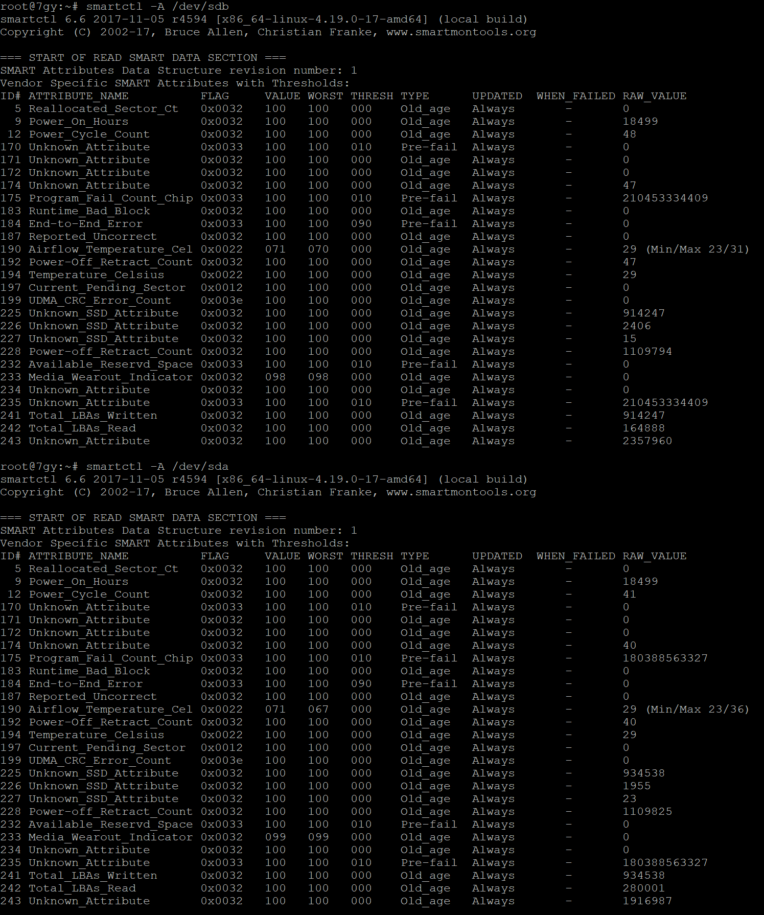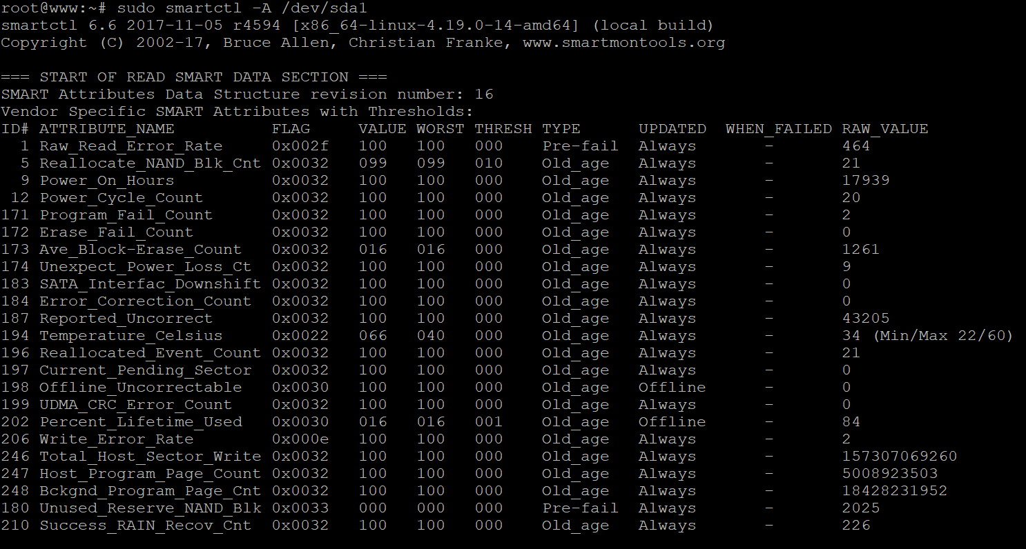 После того, как мы узнали какие вообще диски у нас стоят, то можем обращаться к ним через команду smartctl - A /dev/sda