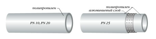 Плюсом армированных труб является то, что значительно уменьшается кислородной диффузия через стенку трубы, также уменьшается удлинение трубы при подаче рабочей среды. Изначально практически весь полипропилен армировался алюминиевой фольгой или сеткой, причем слой армировки располагался ближе к внешней поверхности трубы. Перед сваркой этот слой удалялся при помощи специальных приспособлений (инструментов). Позже появилась армировка трубы алюминием, расположенная ближе к внутренней поверхности трубы. Такой вариант сразу стал популярен, ибо выкидывать деньги на дополнительные приспособления (инструменты для подготовки соединения трубы) никто не хотел. Преимущества у данного типа трубы все те же. Самая "модная" сейчас труба, это армированная стекловолокном. Производители заявляют, что удлинение у нее такое же, но по опыту монтажников мы вам можем сказать, что это не так.