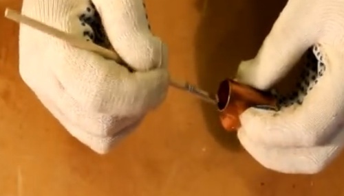 Теперь производим аналогичные действия с ответной частью, которую нам предстоит припаять, будь то фитинг или труба. Здесь зачищаем уже внутреннюю полость трубы (фитинга). Для этого хорошо подойдет жесткий ершик из металла.