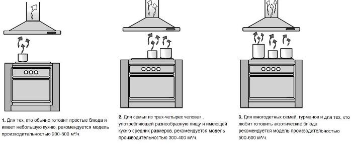 Четвертое – размер вытяжки. Как правило, размер вытяжки выбирается чуть больше размера плиты. При этом, чем выше расположена вытяжка, тем шире она должна быть. Рекомендуется устанавливать вытяжку на высоте порядка 70-80-ти см на газовой плитой, и на высоте 60-70-ти см над электрической плитой.