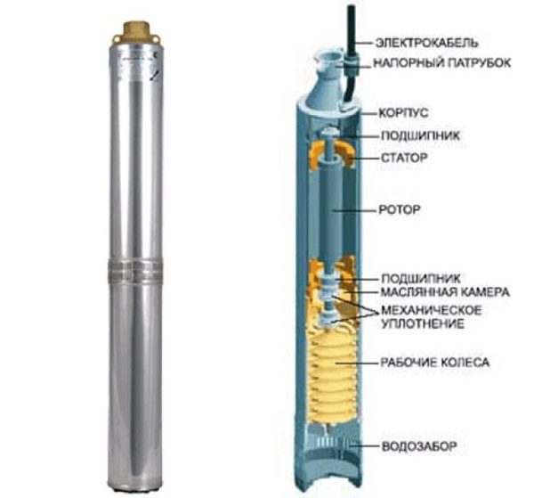 На самом деле это один из самых распространенных и эффективных вариантов насоса для скважины, со своими плюсами. Плюсов здесь много. Это отсутствие необходимости держать постоянно в трубе воду для всасывания. Низкие вибрации для скважины по сравнению с вибрационным насосом. Высокая высота подъема воды. Хорошее охлаждение за счет этой же воды. Доступность и относительная простота и понятность конструкции, о которой мы и погорим далее.