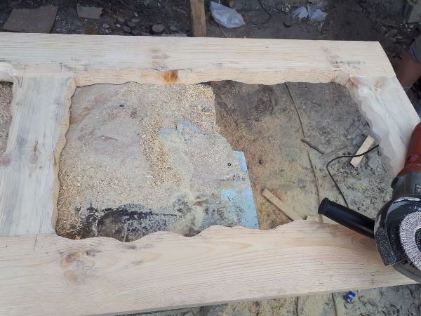 Рама декорируется путем изменение рельефа внутреннего окна. Для этого используется болгарка и абразивный круг.
