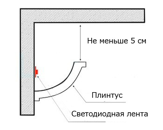 Есть варианты, когда приятное пытаются совместить с полезным. Это случай плинтуса с подсветкой. Этот вариант предусматривает плинтус, за которым будет установлена светодиодная лента.