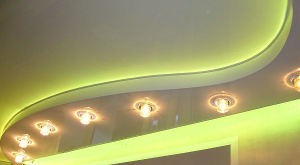 На самом деле вариант не совсем выигрышный. Если вы хотите сделать подсветку для натяжного потолка, то лучше рассмотреть другой вариант. Установить ленту под сам натяжной потолок, по его периметру.