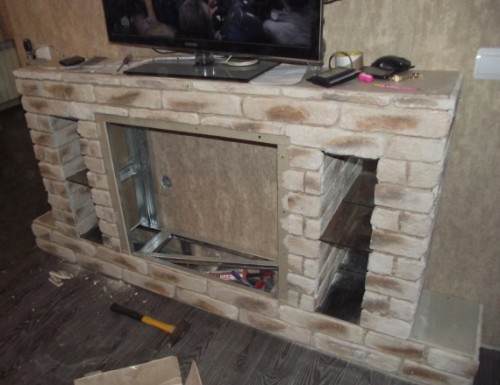 Вот в принципе и все, осталось разложить по полками вещи, установить акустику и телевизор и начать наслаждаться не только желанными телепередачами, но и во время рекламных пауз внешним видом камина, который вы сделали своими руками.