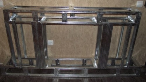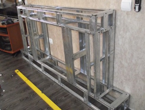Итак, первым делом изготавливаем остов из профиля. Профиль нарезаем нужной длины и скрепляем между собой с помощью саморезов.