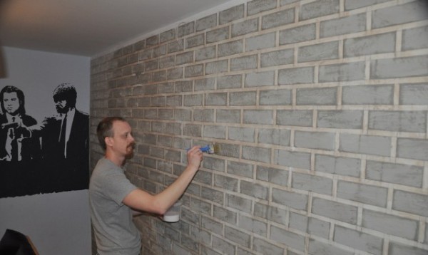 На самом деле здесь не использовано ни одного кирпича, а стена, которая так похожа на кирпичную кладку, является своеобразной бутафорией. Но и в этом нет ничего зазорного или уничижительного, ведь по сути, эти декорации и не предусматривают смысловой подоплеки в виде кирпича, кроме как визуального вида. А значит, применение самого кирпича совсем не обязательно. Давайте теперь попробуем разобраться, как же можно сделать стенку под кирпич своими руками без плитки и кирпича. Именно об этом и будет наш материал.