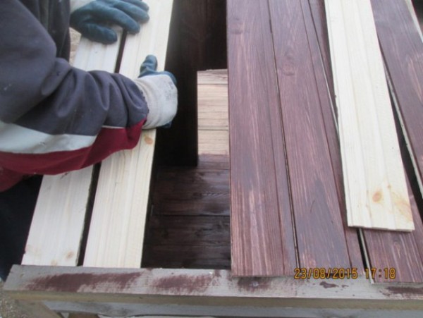 Остается облагородить нашу будку, покрасив ее морилкой и покрыв лаком.