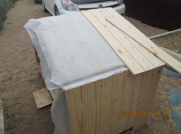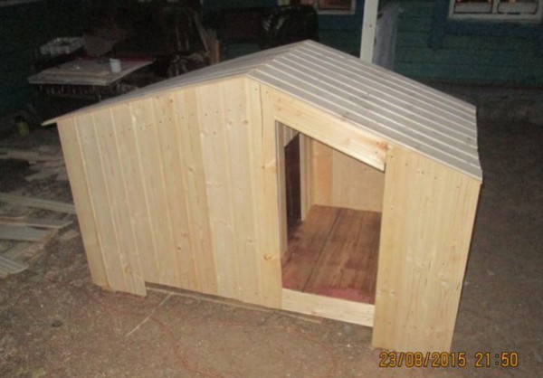 Осталось установить крышу на место и будка готова. Если будка будет стоять на улице, под открытым небом, то стоит прикрыть крышу кровельным материалом, например рубероидом, профлистом или битумной плиткой. Все это были лишь общие рекомендации, а теперь рассмотрим и конкретный пример изготовления будки для собаки своими руками.