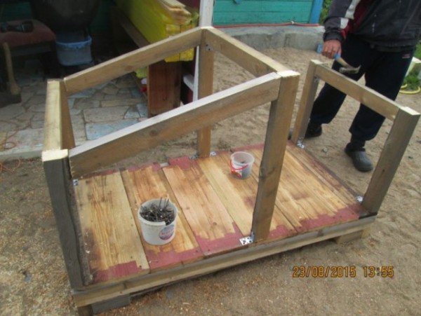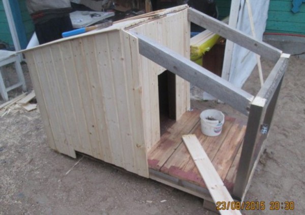 Как сделать будку для собаки из доступных материалов двухобъемную. Пример с пошаговыми фотографиями