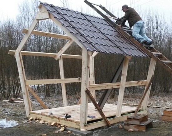 После этого осуществляется настил кровельного материала. Да, не забывает поверхности обработать влагооталкивающей пропиткой. Это позволит избежать образования плесени и гниения дерева. В качестве кровельного материала можно предложить мягкую черепицу или любой другой кровельный материал.