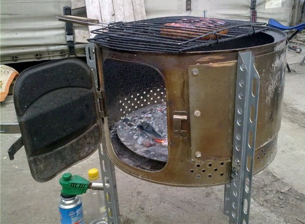 Бак от стиральной машины тоже может стать неплохим мангалом.