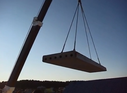 Монтаж плит перекрытия осуществляется с помощью крана, что и логично само по себе.