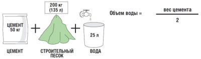 Используйте готовую цементную смесь или сделайте раствор самостоятельно, используя пропорции согласно инструкции ниже.