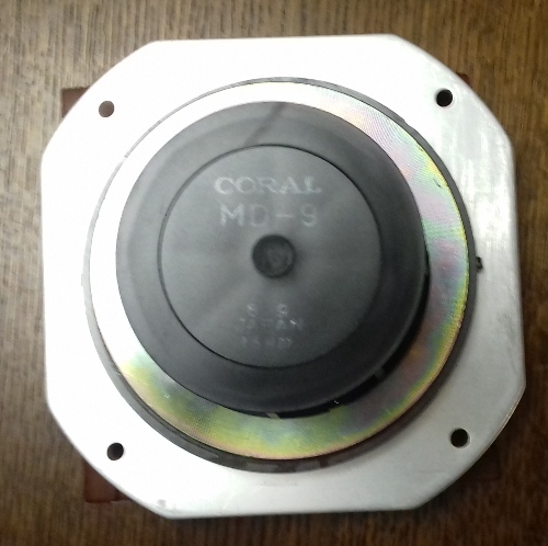 ВЧ динамик. Вывод с красной подложкой "+". 8 Ом. Частота воспроизведения от 5 КГц до 40 КГц, но по факту идет сигнал лишь сигнал более 8 КГц (ограничен фильтром).