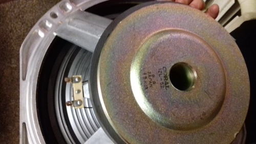 Низкочастотный динамик. Диффузор динамика тканевый, мягкий без пропитки. На площадке где выведены контакты имеется маркировка "+" и "-" для подключения динамика согласно полярности. В динамике применен магнитный тормоз, ограничивающий резонансы при значительных колебаниях диффузора.