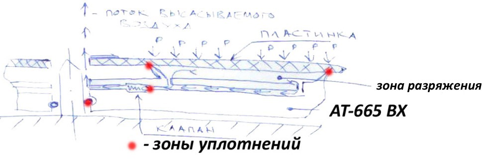 Насос всасывал воздух также через шпиндель, вроде как в модели АТ-665 BX. Единственно воздух всасывался не вверх, а вниз. Вроде того.