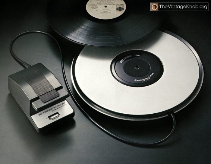 Теперь несколько примеров таких вакуумных стабилизаторов. Первый от японцев, а именно от Audiotechnica. Как мне кажется это наиболее яркие и наиболее распространенные представители вакуумных стабилизаторов пластинок.