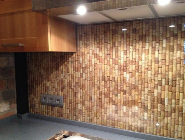 Тот кто занялся ремонтом и обновлением мебели в своей квартире, уже наверное узнал, что хотя кухня не самое большое помещение, но по ремонту и мебели самое дорогое. Действительно, мебель , столешница, встраиваемая техника все это очень дорого и накладно. На самом деле не смотря на основные затраты, всегда надо помнить и о мелочах, ведь без них основные капиталовложения могут не проявиться во всей красе, а значит усилия ваши будут не напрасными, но так скажем не совсем эффективными… Вот скажем фартук над рабочей поверхностью столешницы на кухонном гарнитуре. Сделать его можно применив пластиковую панель, плитку или еще что-то. Наш вариант будет как раз про еще что-то, а вернее про то, как декорировать панель (фартук) пробками от вина и коньяка.